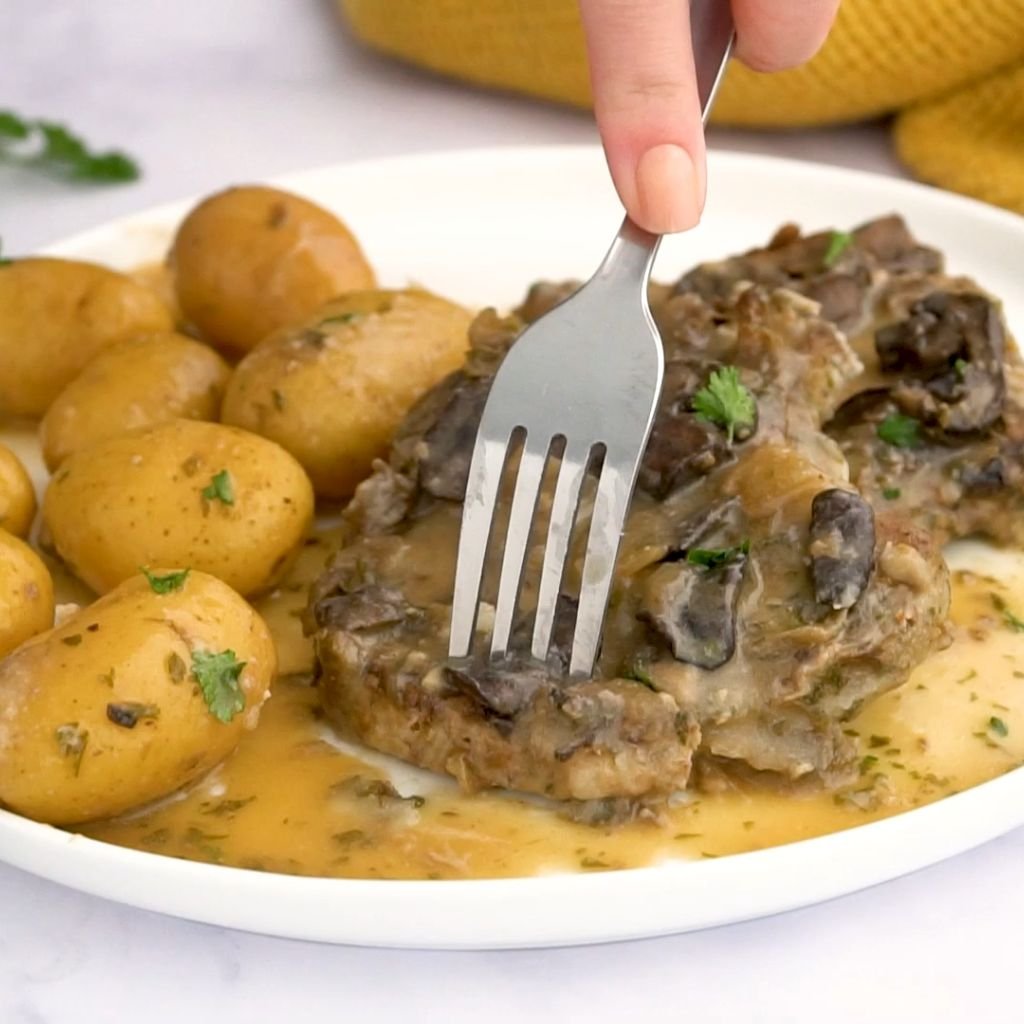 This slow cooker Salisbury steak cooks into a tender and comforting meal. The compact size of a 3 quart Crock-Pot keeps the patties close to the gravy, helping the sauce soak deeply into the meat. The slow heat softens the beef and thickens the gravy naturally, creating a balanced and hearty dish that pairs well with rice or mashed potatoes.