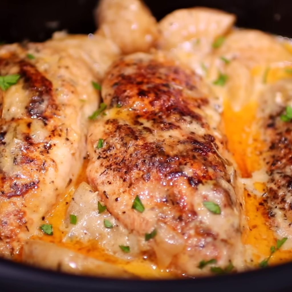 4. Cover the Crock-Pot and cook on LOW for 5 hours. The chicken will release juices that blend with the cream, creating a smooth sauce.