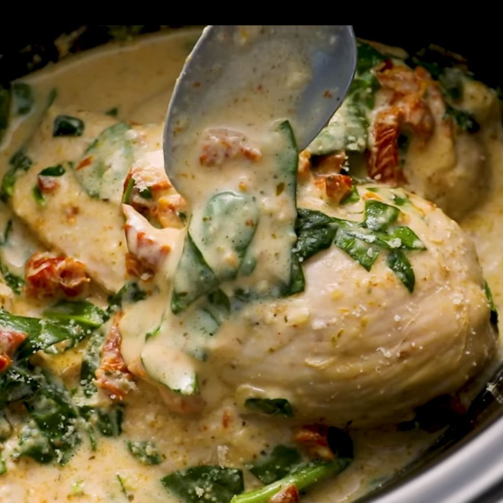 Tuscan garlic chicken thighs cook into a creamy and balanced dish filled with garlic flavor. The sun-dried tomatoes add depth, while spinach softens gently at the end. A 3 quart Crock-Pot keeps the sauce thick and rich without thinning. This recipe works well with rice or pasta and holds its texture during slow cooking.