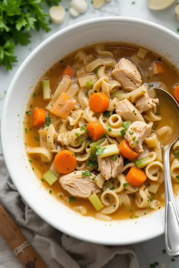 - Serve hot and enjoy this comforting bowl of chicken noodle soup!