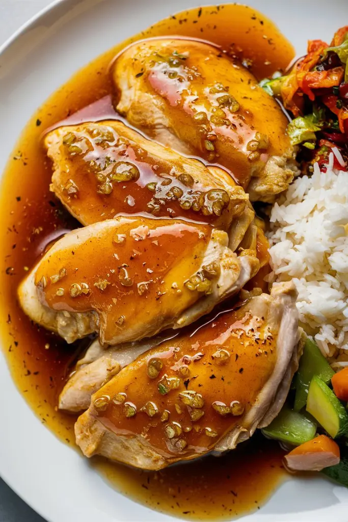 - In a bowl, whisk together soy sauce, honey, rice vinegar, garlic, and ground ginger. Pour this mixture over the chicken.