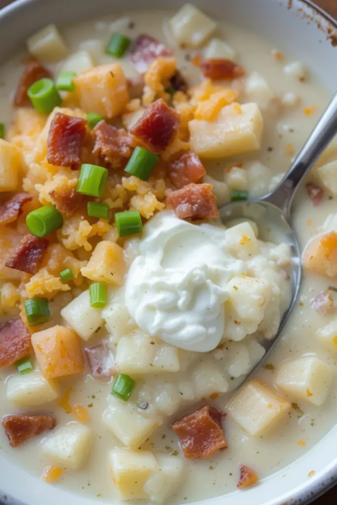 - Top with bacon, green onions, and the remaining cheddar cheese before serving.