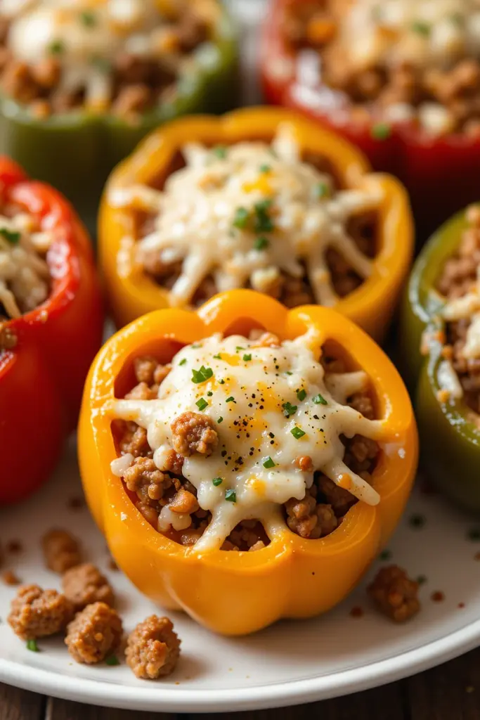 Stuffed Bell Peppers are a healthy and flavorful lunch option. The peppers are filled with a savory mixture of rice, ground beef, and seasonings, all cooked together to create a delicious, well-rounded meal.