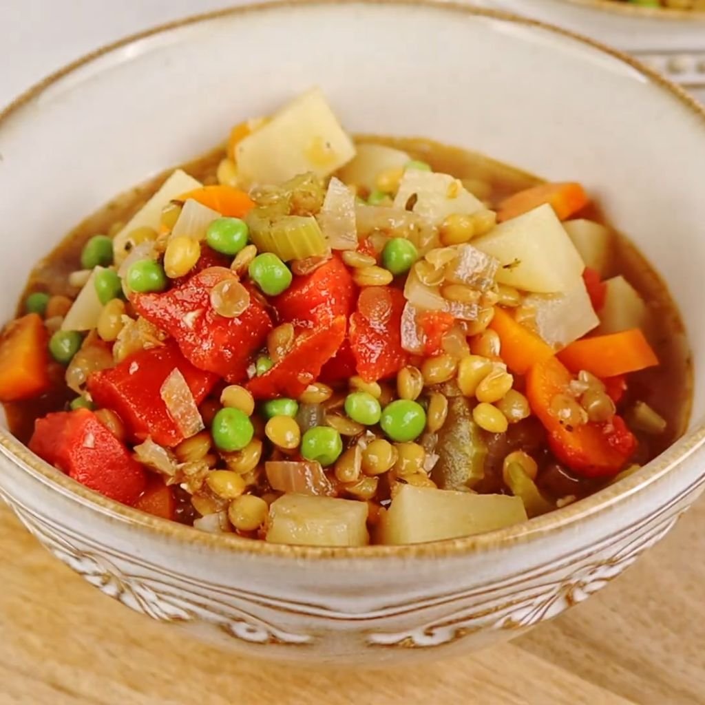 A comforting stew packed with lentils, carrots, celery, and aromatic herbs. This recipe is hearty enough to feel like a main meal while remaining fully vegetarian. Each spoonful is rich, wholesome, and nourishing, making it perfect for family dinners or meal prep.