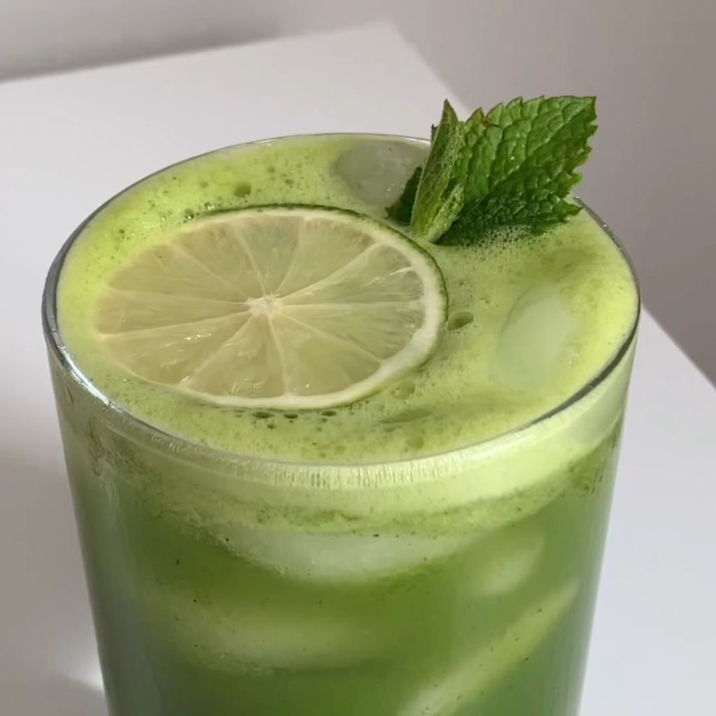 During blending, the liquid becomes slightly frothy. The mint spreads evenly and creates a fresh aroma in the drink.