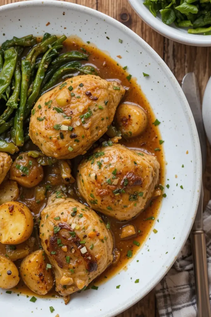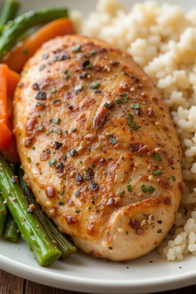 - Season the chicken: Season the chicken breasts with salt, pepper, garlic powder, and onion powder. Drizzle olive oil over them and place the sprigs of thyme on top (if using).