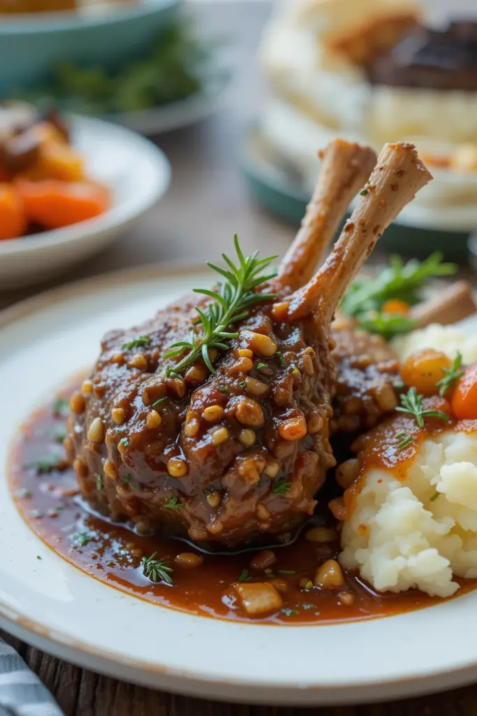 - Serve: Once cooked, remove the lamb shanks and serve them with mashed potatoes or couscous, drizzling the braising sauce over them.