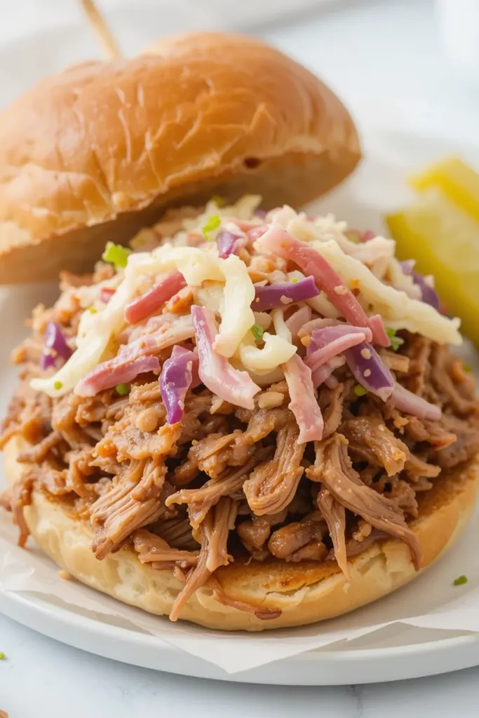 - Serve: Serve the pulled pork on hamburger buns with a side of coleslaw or pickles!