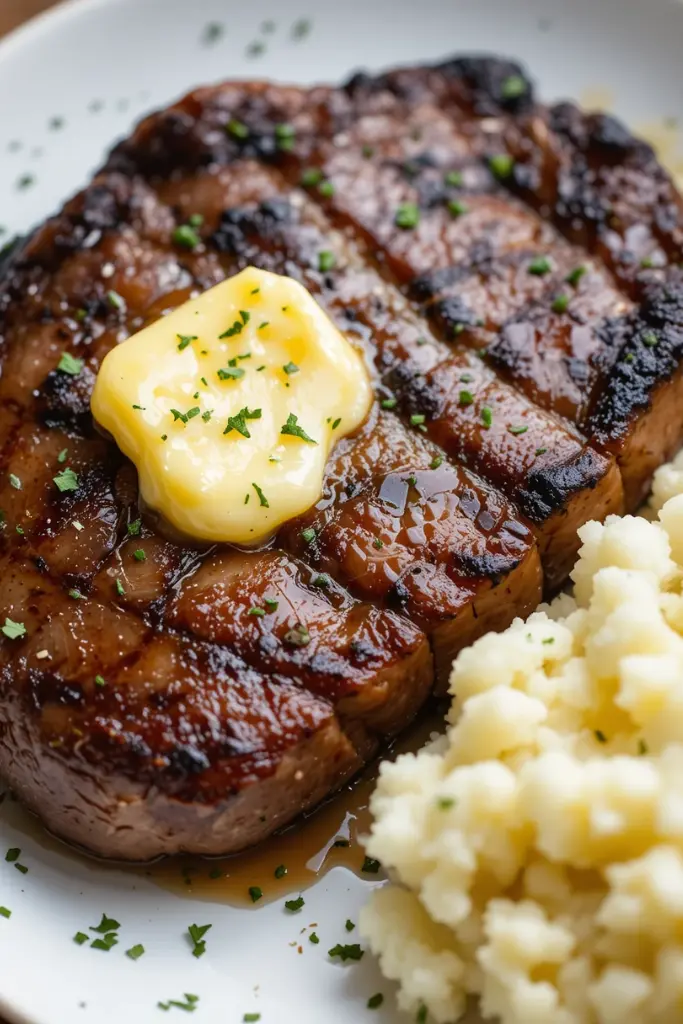 This steak is incredibly juicy and flavorful, thanks to the searing process. Topped with garlic butter, it’s the perfect dinner for steak lovers!