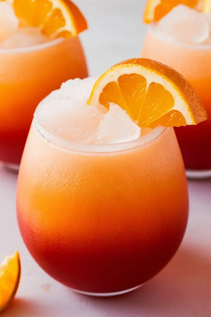 The Orange Tequila Sunrise Slush is a fun and colorful drink that’s perfect for any occasion. With a beautiful gradient of orange and red, this drink is as pretty as it is delicious! It has the bright citrus flavor of orange juice mixed with the smooth kick of tequila.