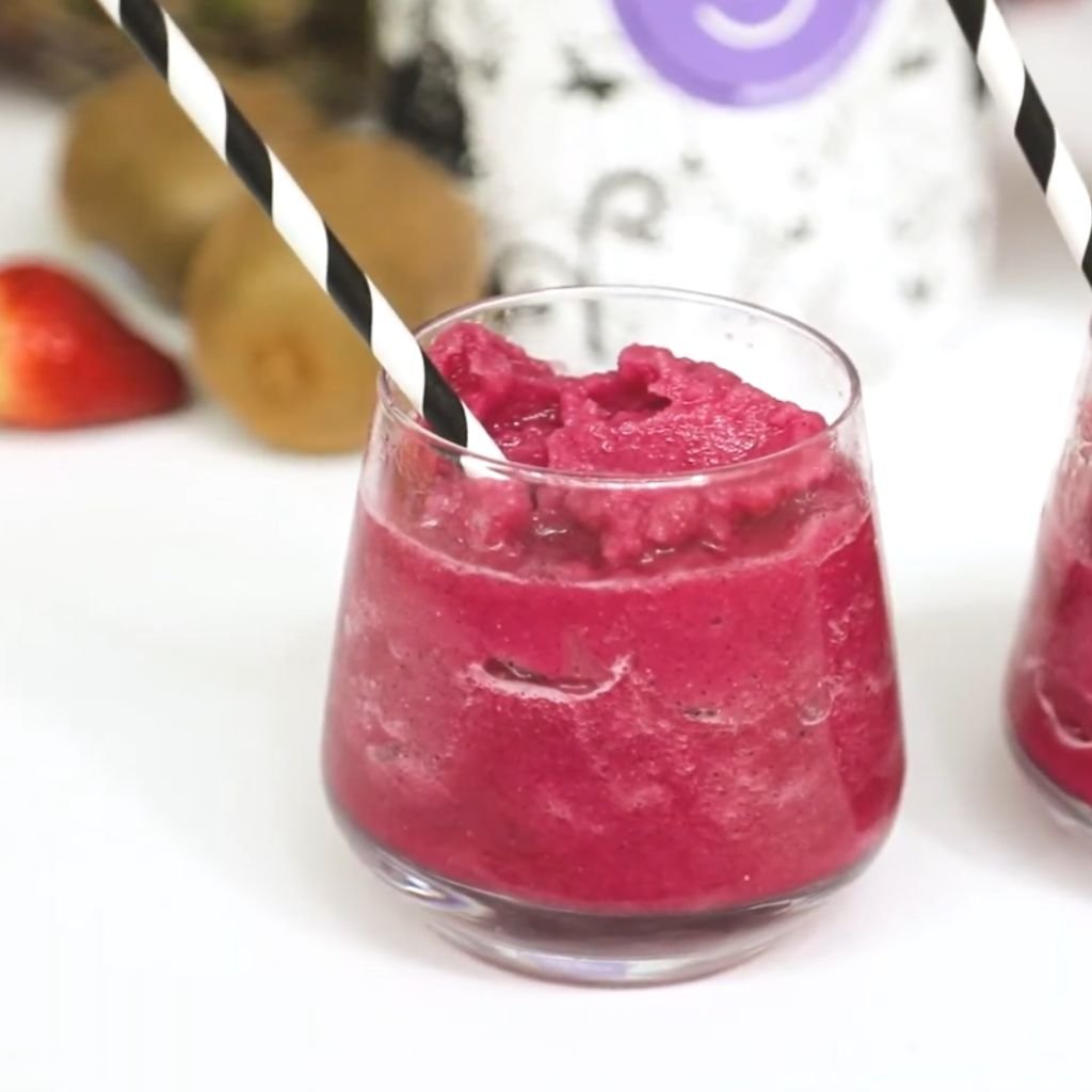 Strawberries and lychee create a bright, sweet blend with a soft floral touch. The mix freezes into a light pink slushi that looks refreshing and tastes smooth. Kids enjoy the gentle sweetness, and the color stays vibrant after pouring.
